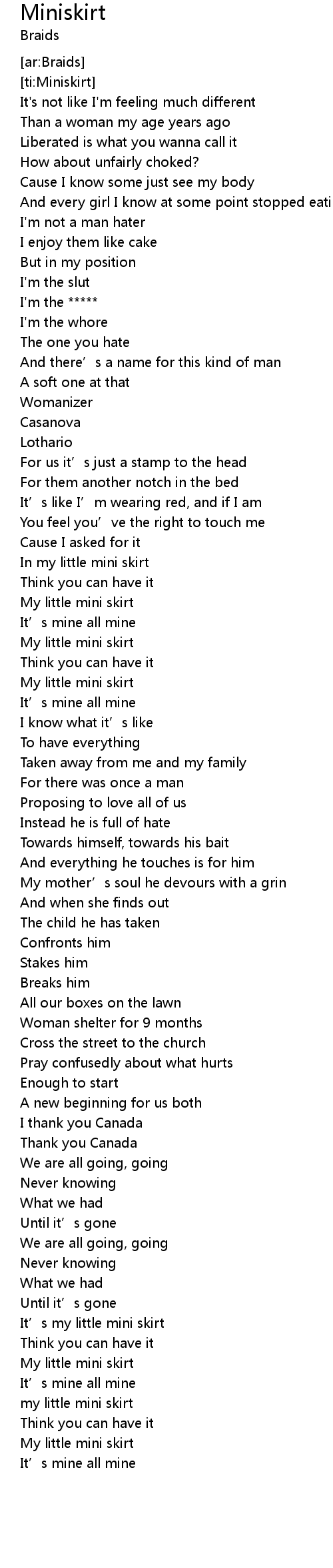 | [04:19.94] | My little mini skirt |