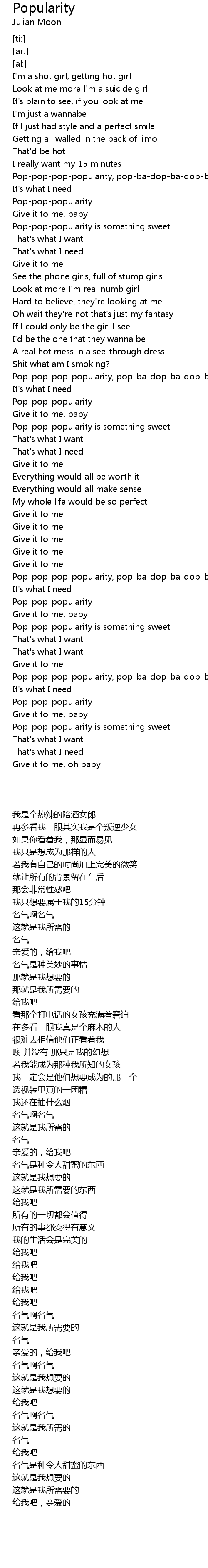 Pop-pop-pop-popularity, pop-ba-dop-ba-dop-bop |