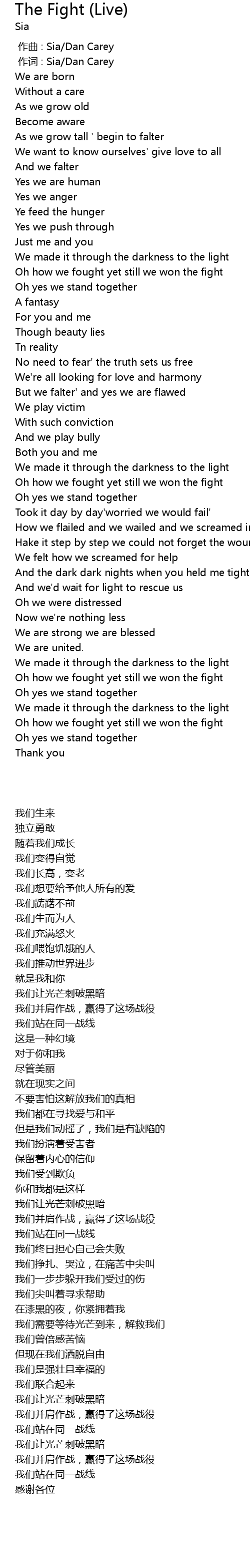 | [02:51.318] | Oh how we fought yet still we won the fight |