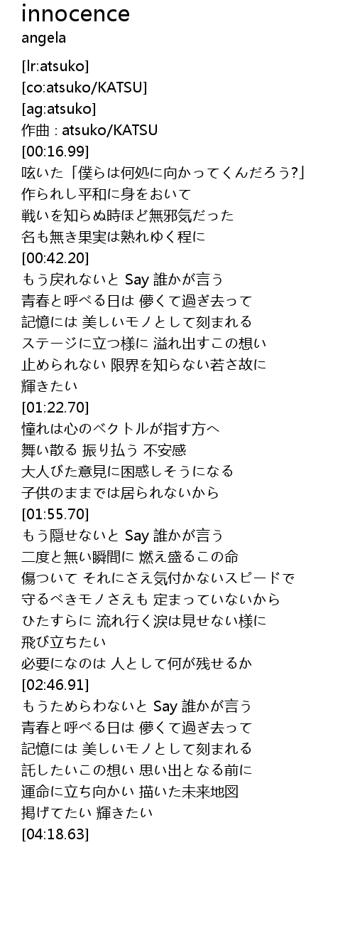 | [03:22.39] | もうためらわないと Say 誰かが言う |