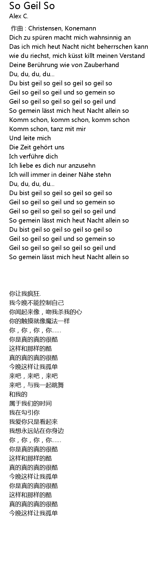 | [02:17.60] | Du bist geil so geil so geil so geil so |