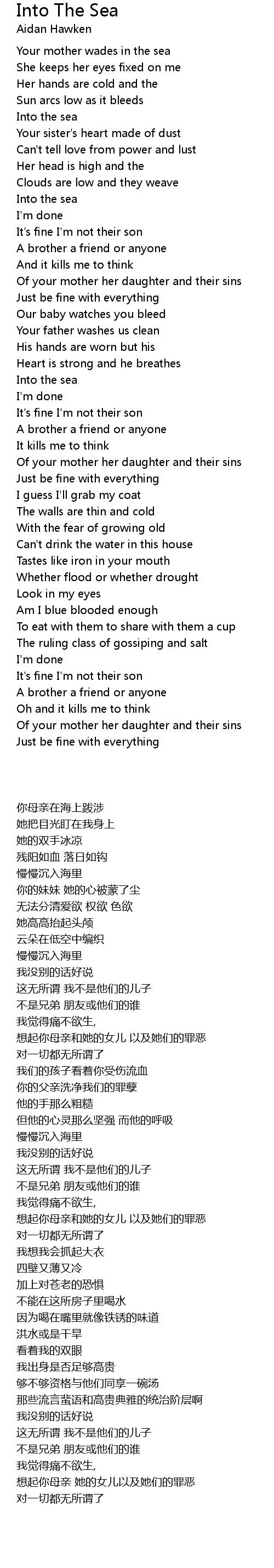 Your mother wades in the sea |