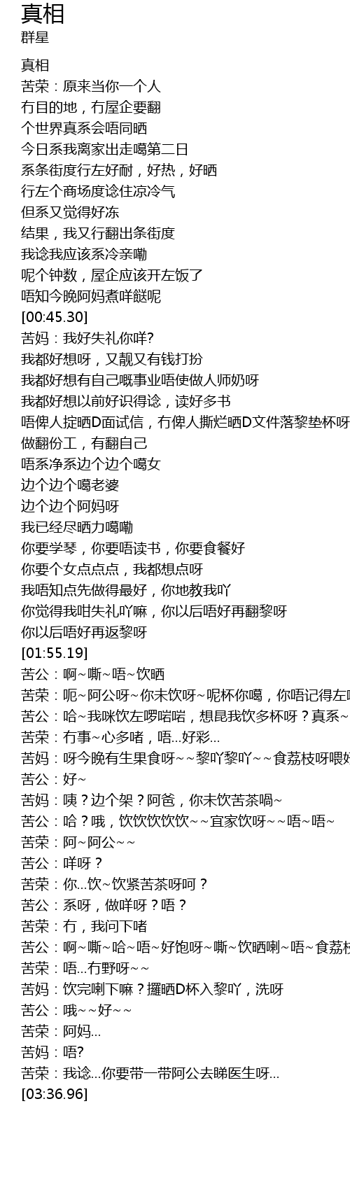 | [03:19.74] | 苦荣:唔...冇野呀~~ |