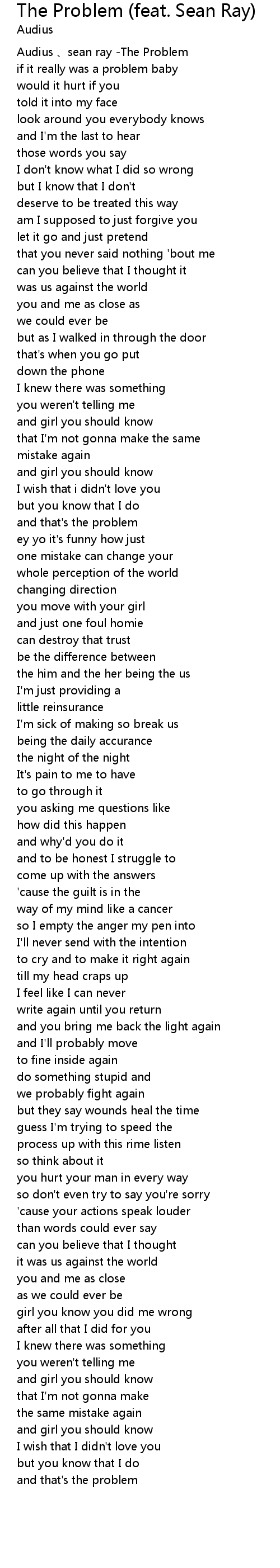 | 歌曲 | The Problem (feat. Sean Ray) |