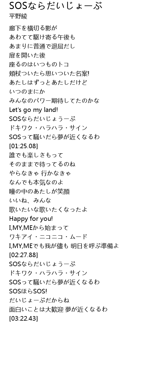 | [02:55.23] | SOSって騒いだら夢が近くなるわ |