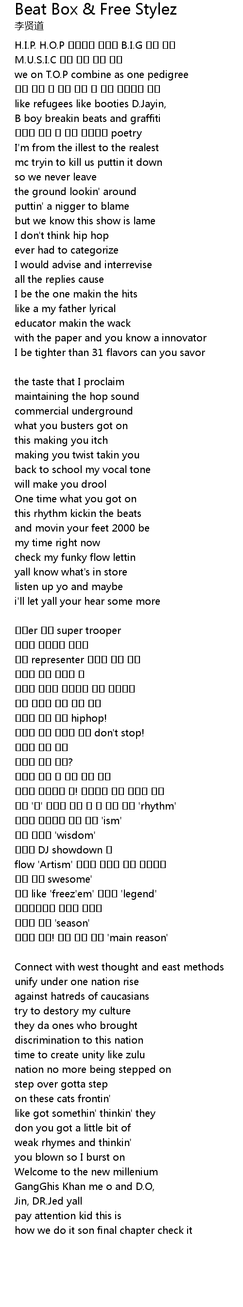 | 歌曲 | Beat Box & Free Stylez |