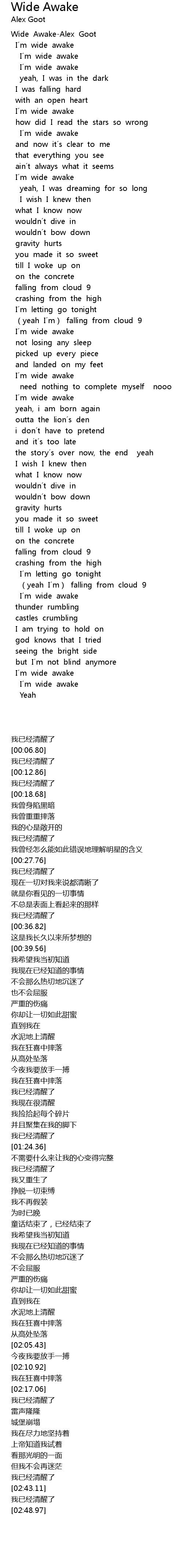 | [02:17.81] | 我已经清醒了 |