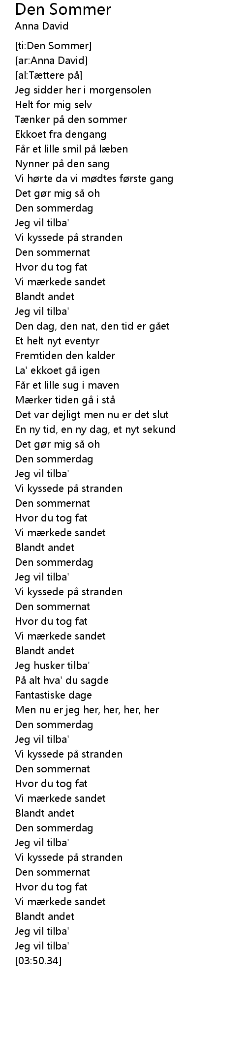 | [01:19.21] | Det var dejligt men nu er det slut |