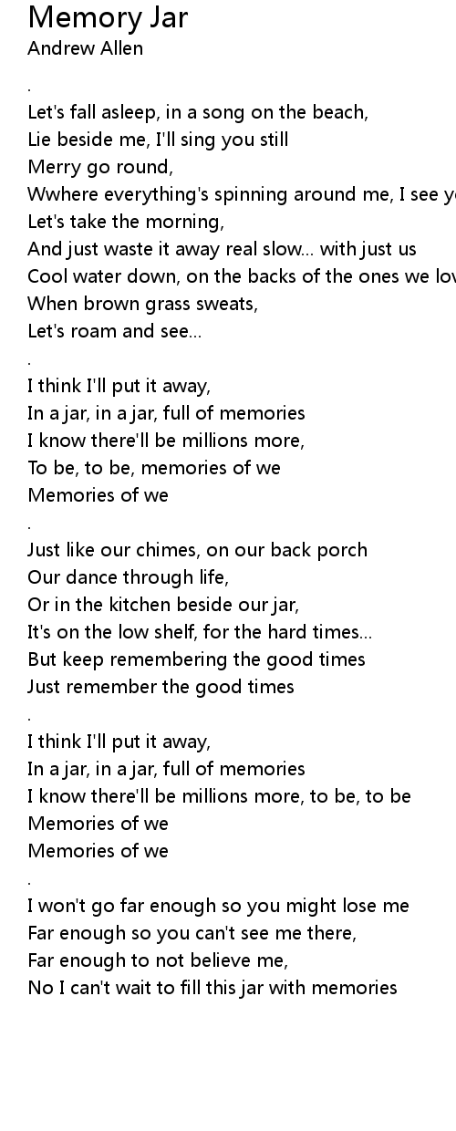 In a jar, in a jar, full of memories |