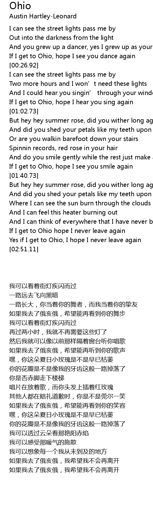 | [00:56.70] | If I get to Ohio, hope I hear you sing again |