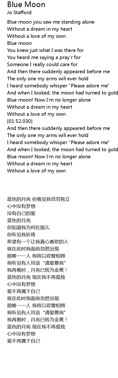 Blue moon you saw me standing alone |