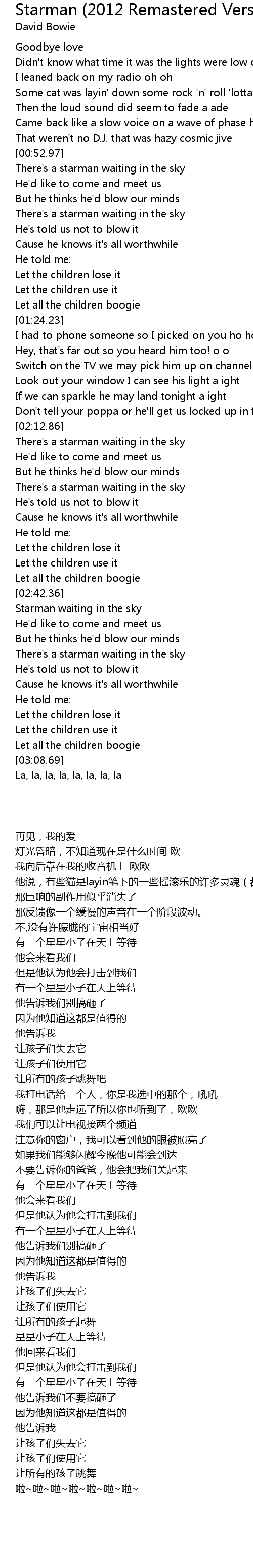 Starman (2012 Remastered Version) 歌词