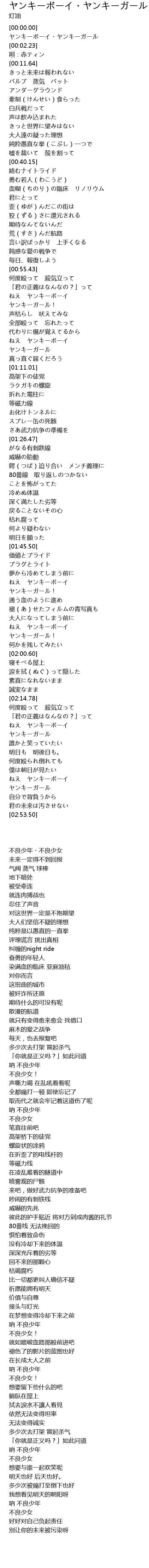 | [00:00.23] | ヤンキーボーイ・ヤンキーガール |