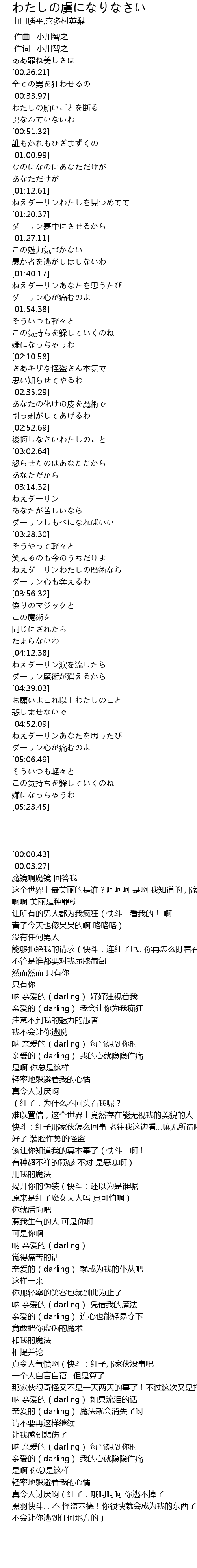 | [03:22.78] | 亲爱的(darling) 就成为我的仆从吧 |