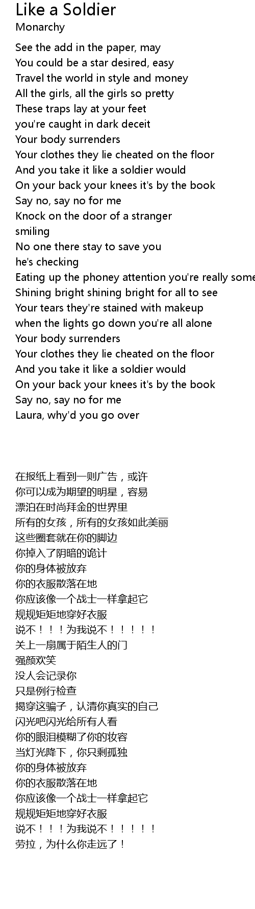 And you take it like a soldier would |