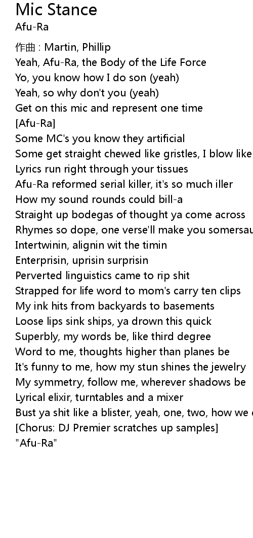 | 歌曲 | Mic Stance |