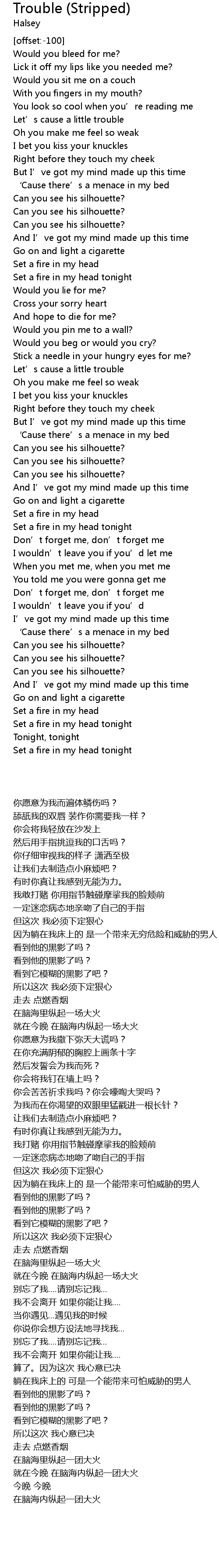 | [00:00.00] | Would you bleed for me? |
