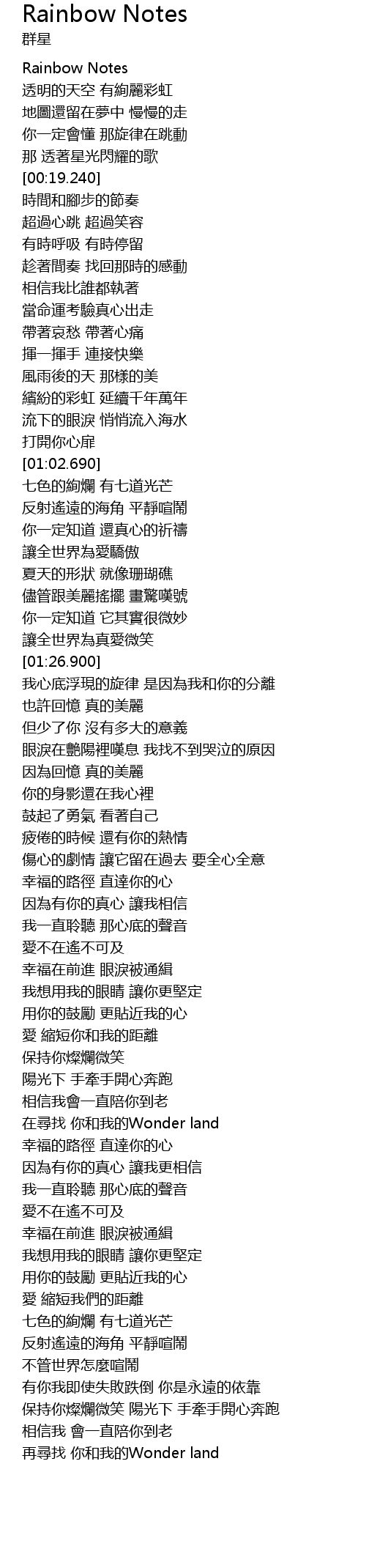 | [03:58.500] | 再尋找 你和我的Wonder land |