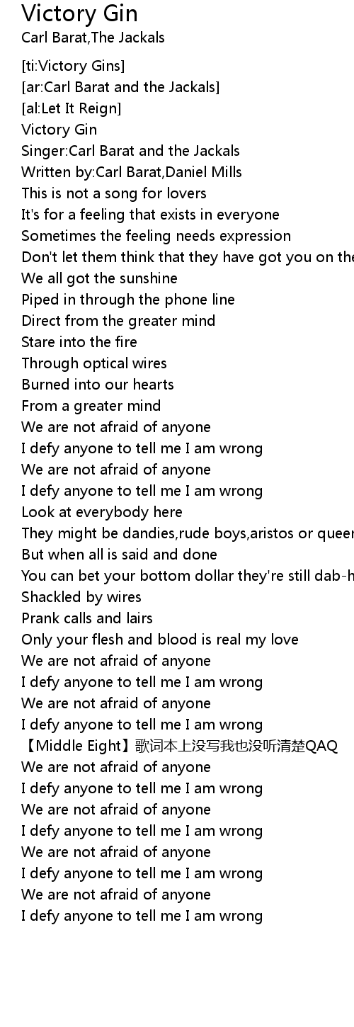 | [00:06.59] | Singer: Carl Barat and the Jackals |