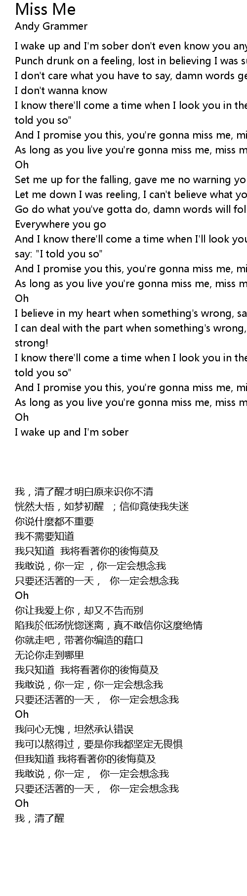 As long as you live you're gonna miss me, miss me |