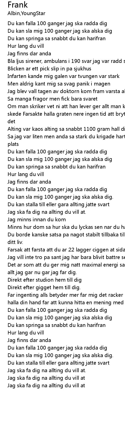 | [00:31.61] | Bla ljus sirener, ambulans i 190 svar jag var radd som fan. |