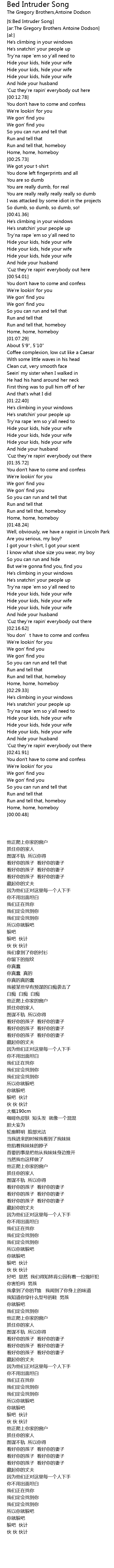 | [00:49.70] | Hide your kids, hide your wife |