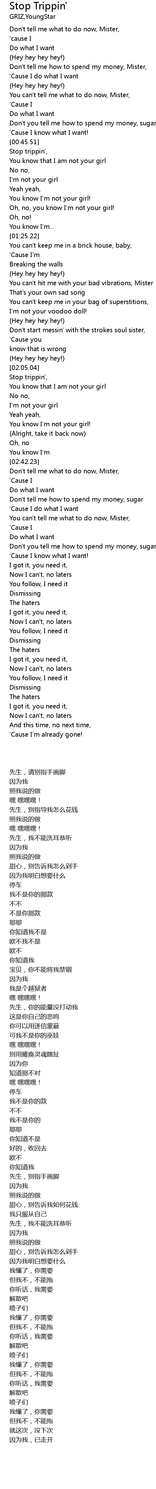 Stop trippin', |
