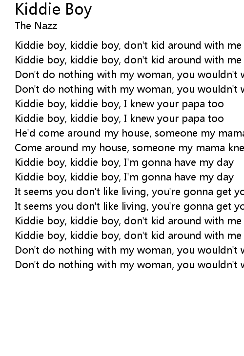 | Kiddie boy, kiddie boy, I'm gonna have my day | |