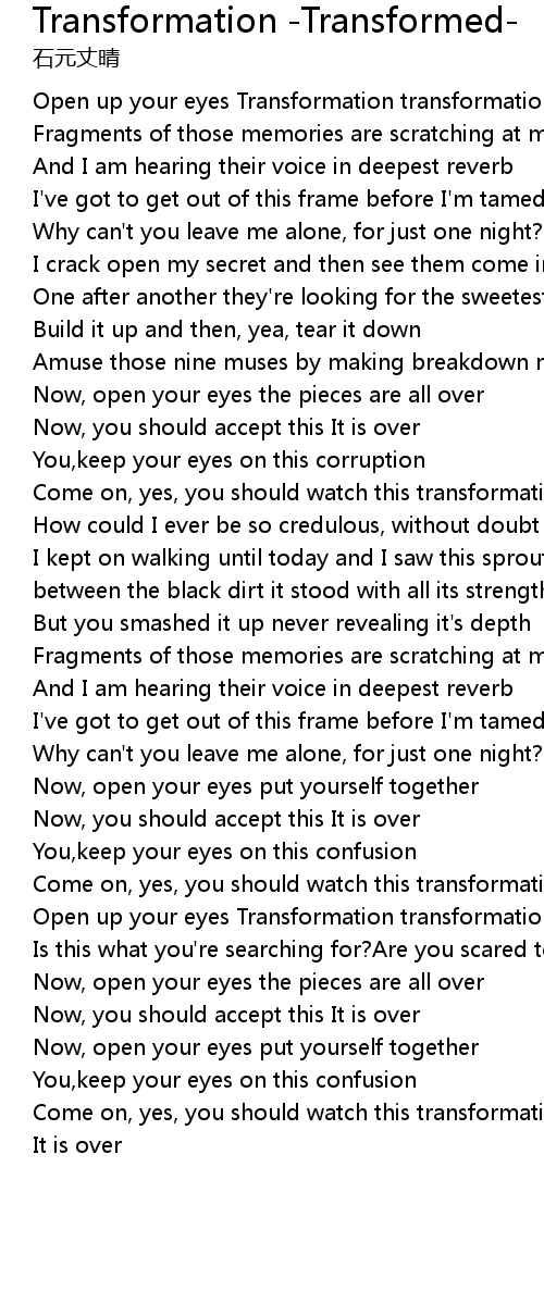 [00:03.00] Open up your eyes Transformation transformation It's over