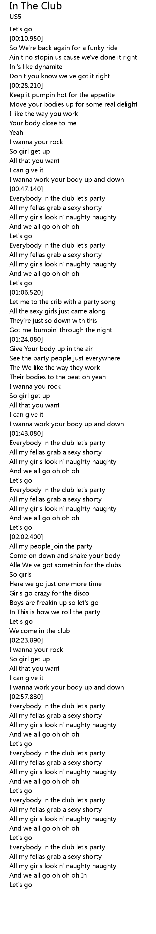 Everybody in the club let's party |