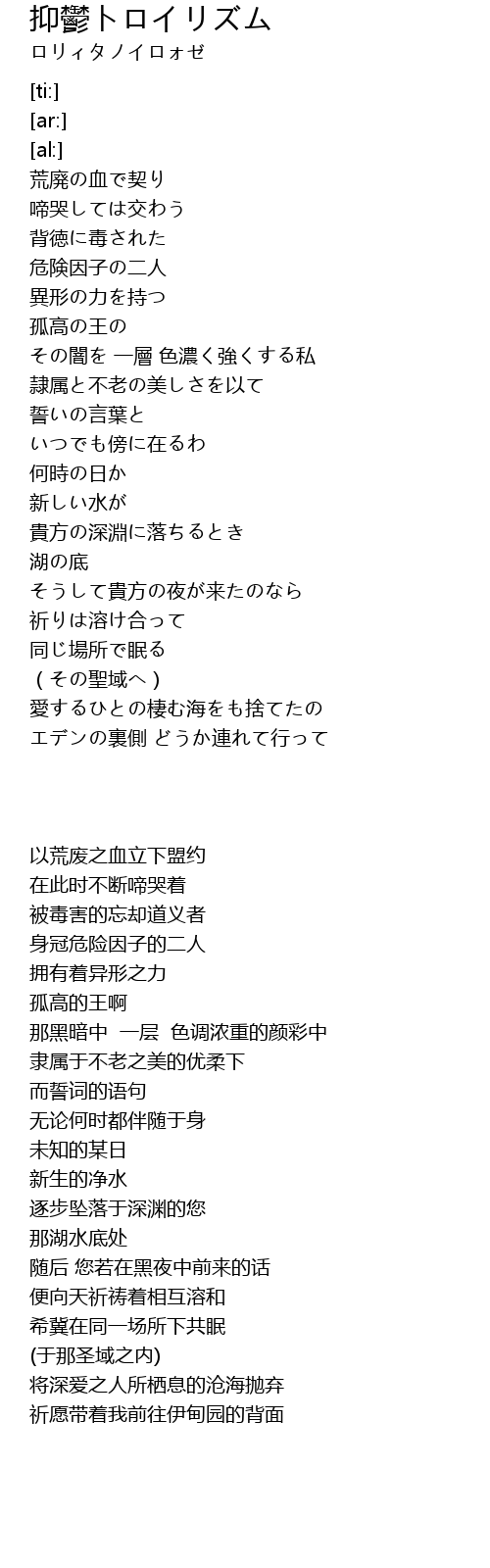 | [03:43.67] | 祈愿带着我前往伊甸园的背面 |