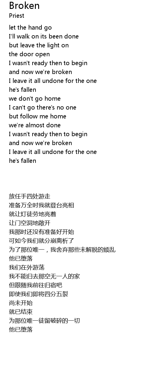 | [01:47] | 为那位唯一徒留破碎的一切 |