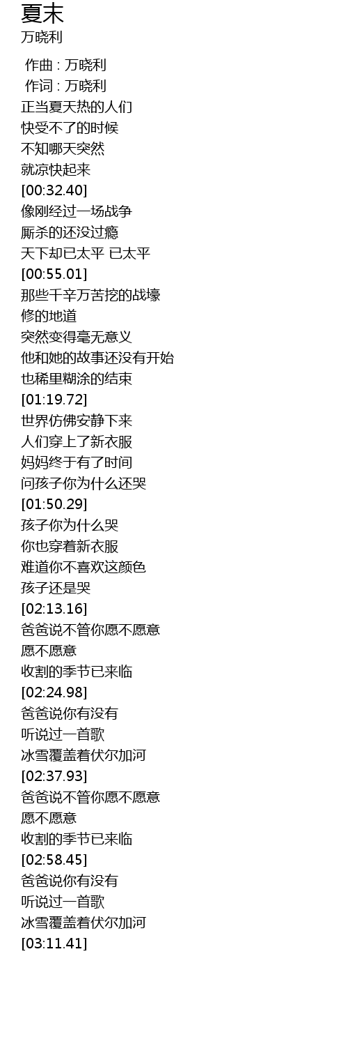 | [00:01.00] | 作词 : 万晓利 |
