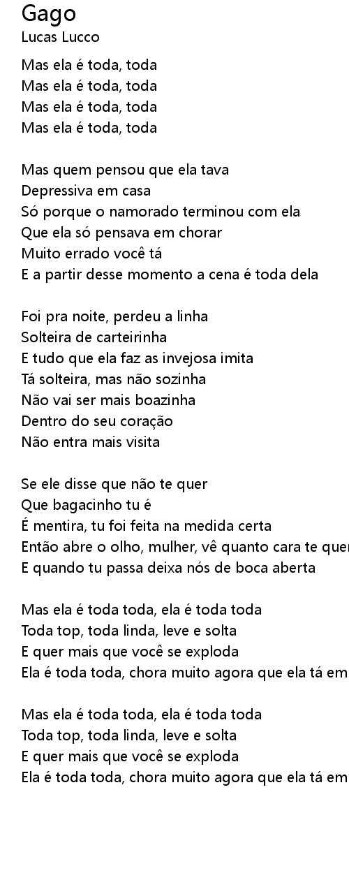 | Ela é toda toda, chora muito agora que ela tá em outra | |