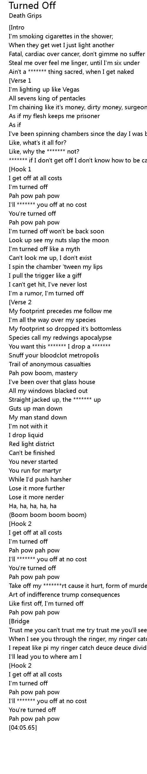 [03:18.74] Take off my *******rt cause it hurt, form of murder