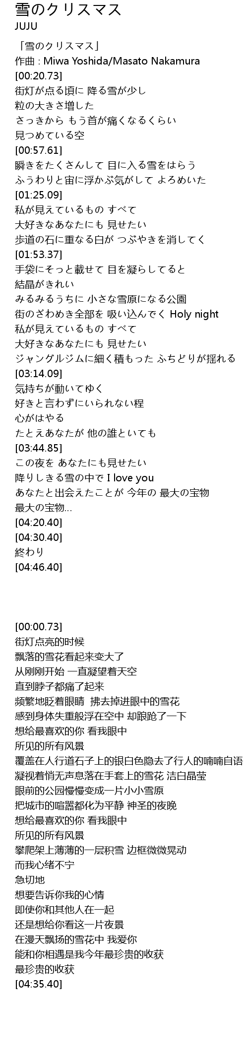| [03:52.84] | 降りしきる雪の中で I love you |