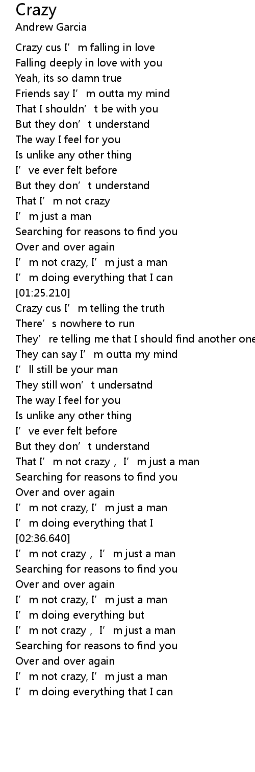 | [02:11.310] | That I' m not crazy, I' m just a man |