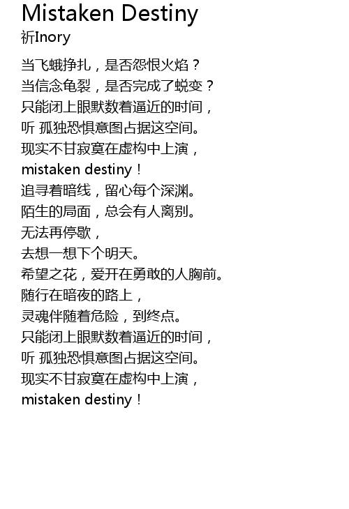 | [00:26.32] | mistaken destiny! |