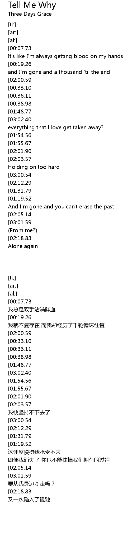 | [03:08.49][03:02.40][02:50.41][02:44.50][02:08.45][01:56.42][01:50.38][01:02.24][00:50.21][00:44.02] |