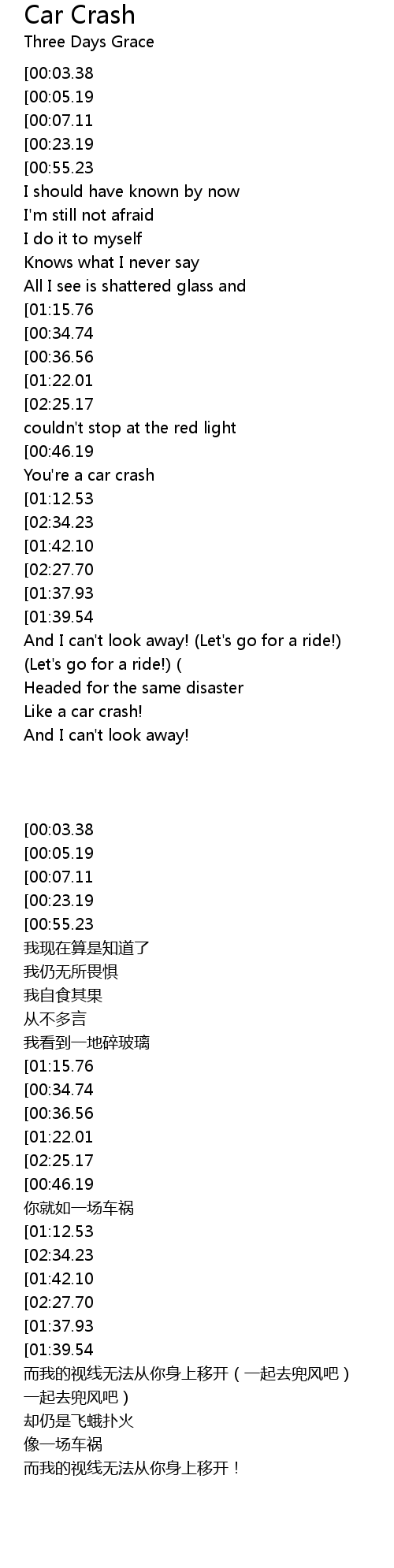 | [02:40.79][02:27.70][01:47.63][01:34.53] | You' re just like a car crash |
