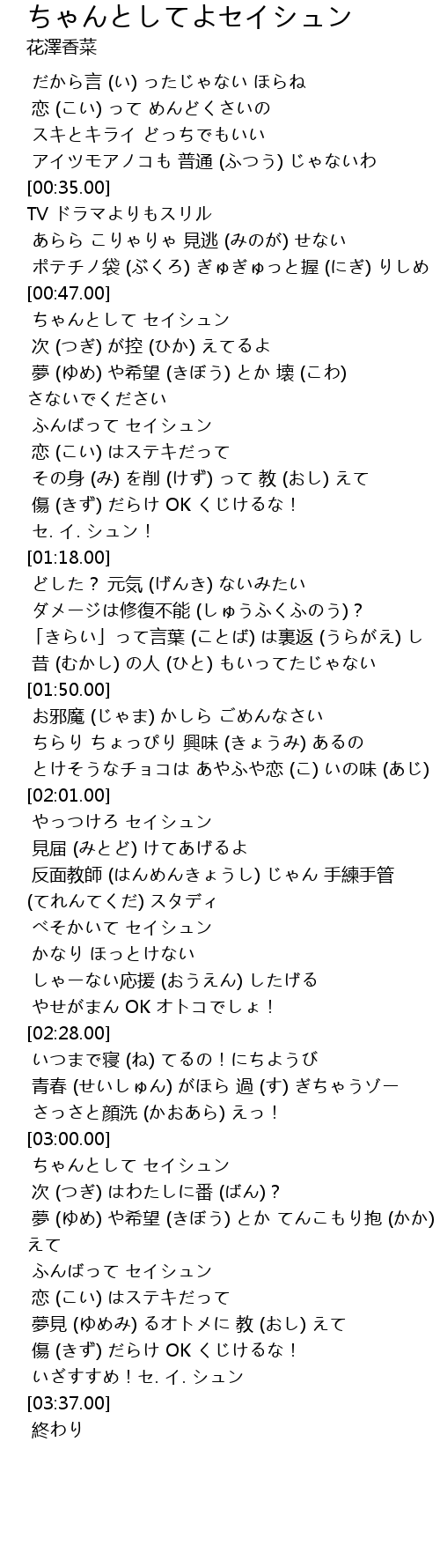 | [03:02.00] | ちゃんとして セイシュン |