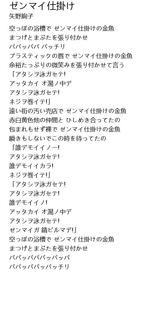 | 包まれもせず裸で ゼンマイ仕掛けの金魚 | |