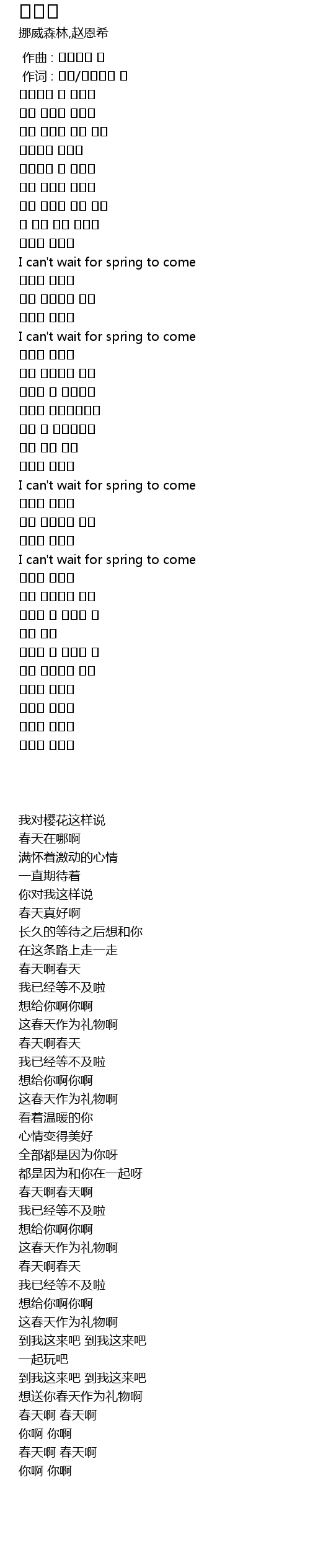 | [02:58.57] | 想送你春天作为礼物啊 |