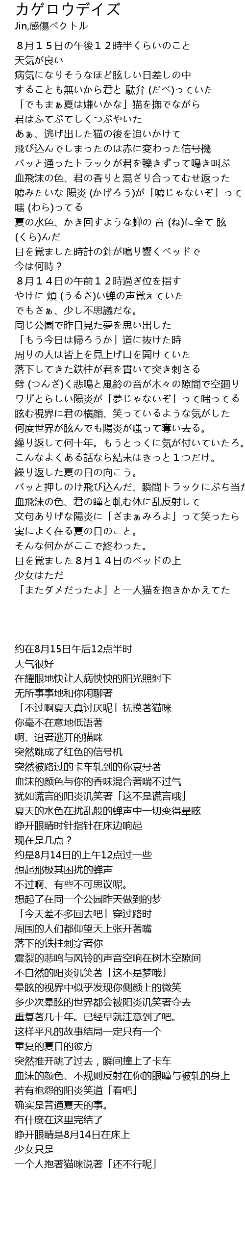 | [03:20.31] | 文句ありげな陽炎に「ざまぁみろよ」って笑ったら |