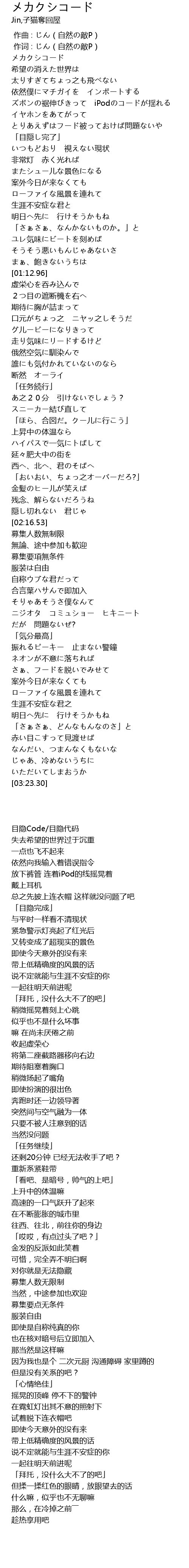 | [00:05.36] | メカクシコード |