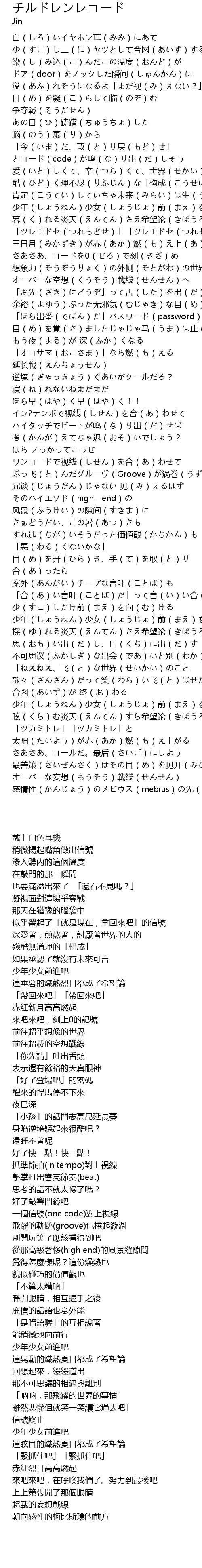 | [03:02.910] | 感情性(かんじょう)のメビウス(mebius)の先(さき)へ |