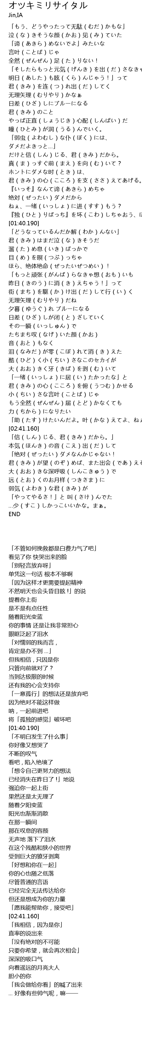 | [02:58.820] | 「信(しん)じる、君(きみ)だから。」 |