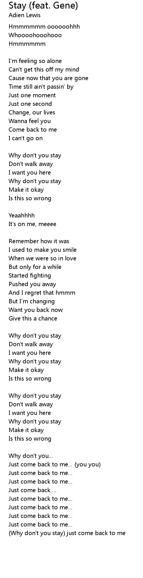 | Why don' t you stay just come back to me |
