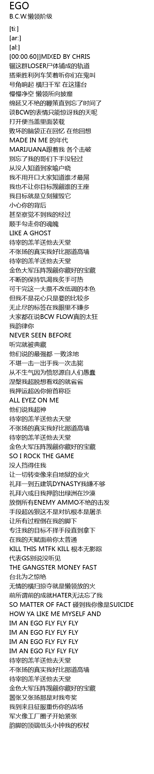| [02:33.19] | IM AN EGO FLY FLY FLY |