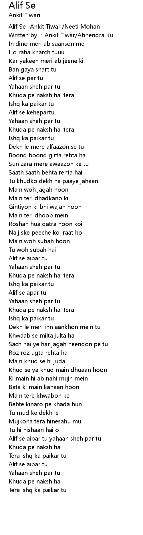 | [00:00.165] | Alif Se -Ankit Tiwari/Neeti Mohan |